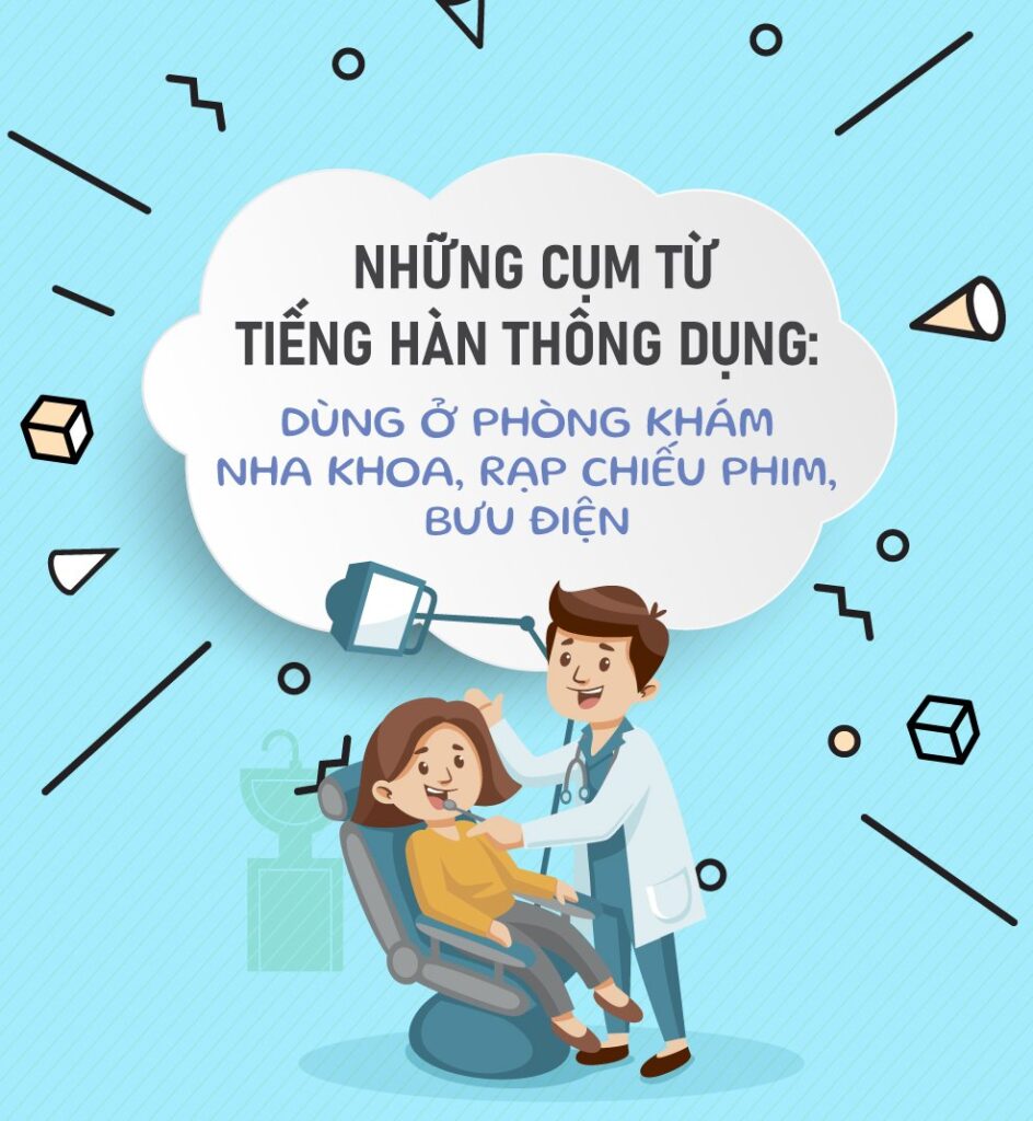 CÁC CỤM TỪ TIẾNG HÀN THÔNG DỤNG (DÙNG Ở PHÒNG KHÁM NHA KHOA, RẠP CHIẾU PHIM, BƯU ĐIỆN)
